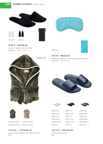 73,13 %u20ac / 1 879,40 K%u010dLuxusn%u00fd %u017eupan VINGA Louis, OEKO-TEX 100RPET13,74 %u20ac / 353,30 K%u010dProti%u0161mykov%u00e9 papu%u010deEVA3,51 %u20ac / 90,20 K%u010dChladiaca maska na o%u010di plnen%u00e1g%u00e9lov%u00fdmiguli%u010dkamipolyester %u2022 23%u00d712,3cm2,33 %u20ac / 60,00 K%u010dPapu%u010de s%u00a0obalom (ve%u013ekos%u0165 44-45)polyester %u2022 28,5%u00d711cm18633.01 18633.1143006.3623947.02 (L/XL) 06981.11XL223947.13 (L/XL)22295.02 (S/M) 22295.13 (S/M) 06981.01XL206981.01XL 06981.11XL06981.01L 06981.11L06981.01M 06981.11M06981.01S 06981.11S06981.98XL206981.98XL06981.98L06981.98M06981.98S09731.01 09731.11 09731.98396 OSOBN%u00c9 POTREBY | WELLNESS