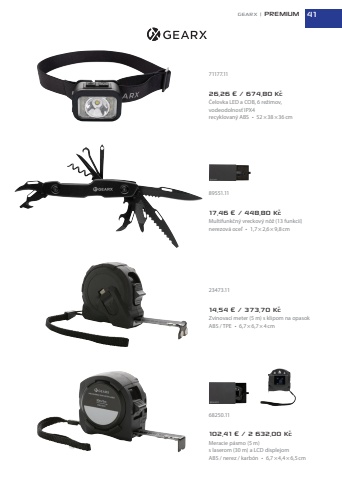 26,26 %u20ac / 674,80 K%u010d%u010celovka LED a%u00a0COB, 6 re%u017eimov, vodeodolnos%u0165 IPX4recyklovan%u00fd ABS %u2022 52%u00d738%u00d736cm17,46 %u20ac / 448,80 K%u010dMultifunk%u010dn%u00fd vreckov%u00fd n%u00f4%u017e (13 funkci%u00ed)nerezov%u00e1 oce%u013e %u2022 1,7%u00d72,6%u00d79,8cm14,54 %u20ac / 373,70 K%u010dZvinovac%u00ed meter (5 m) s%u00a0klipom na opasokABS / TPE %u2022 6,7%u00d76,7%u00d74cm102,41 %u20ac / 2 632,00 K%u010dMeracie p%u00e1smo (5 m) s%u00a0laserom (30 m) a%u00a0LCD displejomABS / nerez / karb%u00f3n %u2022 6,7%u00d74,4%u00d76,5cm68250.1171177.1189551.1123473.11GEARX | PREMIUM 41