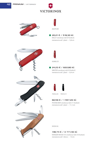 20,21 %u20ac / 519,30 K%u010dRALLY vreckov%u00fd n%u00f4%u017e (9 funkci%u00ed)nerezov%u00e1 oce%u013e / plast %u2022 5,8cm24,23 %u20ac / 622,80 K%u010dWAITER vreckov%u00fd n%u00f4%u017e (9 funkci%u00ed)nerezov%u00e1 oce%u013e / plast %u2022 8,4cm60,59 %u20ac / 1 557,20 K%u010dPICKNICKER vreckov%u00fd n%u00f4%u017e (11 funkci%u00ed)nerezov%u00e1 oce%u013e / plast %u2022 11,1cm146,74 %u20ac / 3 771,40 K%u010dRANGER WOOD 55 vreckov%u00fd n%u00f4%u017e (10 funkci%u00ed)nerezov%u00e1 oce%u013e / drevo %u2022 13cm66274.0042498.3579412.01 79412.1193559.1642 PREMIUM | VICTORINOX