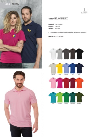 WHITE HEATHER GREY STORM GREY CHARCOAL BLACKLIGHT GREY YELLOW LIGHT BLUE BLUE NAVYLIGHT PINK MAGENTA RED BURGUNDY ORANGEAQUA APPLE GREEN FERN GREEN FOREST GREEN ARMY GREEN45996 %u2022 HELIOS UNISEXMateri%u00e1l: 100% bavlnaGram%u00e1%u017e: 180 g/m2Ve%u013ekos%u0165: XS %u2013 3XL%u2022 Odn%u00edmate%u013en%u00fd %u0161t%u00edtok, ploch%u00fd %u00fapletov%u00fd golier, zap%u00ednanie na 3 gomb%u00edky.Cena od: 10,17 %u20ac / 261,50 K%u010d474 TEXTIL | POLOKO%u0160ELE