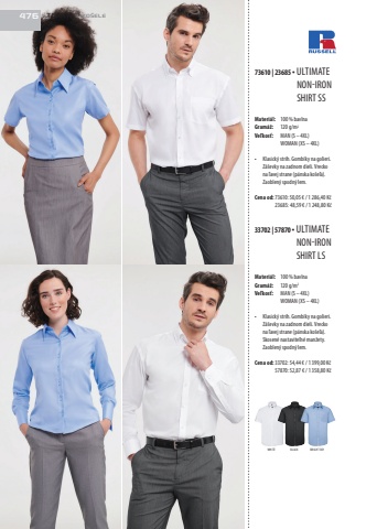 WHITE BLACK BRIGHT SKY73610 | 23685 %u2022 ULTIMATE NON-IRON SHIRT SSMateri%u00e1l: 100% bavlnaGram%u00e1%u017e: 120 g/m2 Ve%u013ekos%u0165: MAN (S %u2013 4XL) WOMAN (XS %u2013 4XL)%u2022 Klasick%u00fd strih. Gomb%u00edky na golieri. Z%u00e1%u0161evky na zadnom dieli. Vrecko na %u013eavej strane (p%u00e1nska ko%u0161e%u013ea). Zaoblen%u00fd spodn%u00fd lem.Cena od: 73610: 50,05 %u20ac / 1 286,40 K%u010d23685: 48,59 %u20ac / 1 248,80 K%u010d33702 | 57870 %u2022 ULTIMATE NON-IRON SHIRT LS Materi%u00e1l: 100% bavlnaGram%u00e1%u017e: 120 g/m2 Ve%u013ekos%u0165: MAN (S %u2013 4XL) WOMAN (XS %u2013 4XL)%u2022 Klasick%u00fd strih. Gomb%u00edky na golieri. Z%u00e1%u0161evky na zadnom dieli. Vrecko na %u013eavej strane (p%u00e1nska ko%u0161e%u013ea). Skosen%u00e9 nastavite%u013en%u00e9 man%u017eety. Zaoblen%u00fd spodn%u00fd lem.Cena od: 33702: 54,44 %u20ac / 1 399,00 K%u010d57870: 52,87 %u20ac / 1 358,80 K%u010d476 TEXTIL | KO%u0160ELE