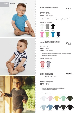 ORCHID PINKWHITE/REDAPPLE GREENWHITE/NAVYAQUA FRENCH NAVYLIGHT BLUEWHITE MELANGE GREY BLACKDUSTY INDIGO NAVY CHARCOAL BLACKWHITE PINK DUSTY YELLOWDUSTY MINT MILITARY35350 %u2022 BABIES BAMBINOMateri%u00e1l: bavlnaGram%u00e1%u017e: 180 g/m2Ve%u013ekos%u0165: 3/6M %u2013 18/23M%u2022 L%u00edmec a man%u017eety s lemovan%u00edm, zap%u00ednanie na patentky v rozkroku.Cena od: 6,46 %u20ac / 166,10 K%u010d27639 %u2022 BABY STRIPED MILESMateri%u00e1l: bavlnaGram%u00e1%u017e: 180 g/m2Ve%u013ekos%u0165: 3/6M %u2013 18/23M%u2022 Spev%u0148ovacia p%u00e1ska na krku, ob%u00e1lkov%u00fd v%u00fdstrih, kontrastn%u00e9 lemovanie, zap%u00ednanie na patentky v rozkroku.Cena od: 7,79 %u20ac / 200,40 K%u010d44179 %u2022 BABIES LSL BODYSTOCKINGMateri%u00e1l: organick%u00e1 bavlna Gram%u00e1%u017e: 220 g/m2Ve%u013ekos%u0165: 62 %u2013 92%u2022 Rebrovan%u00fd %u00faplet, %u010desan%u00e1 organick%u00e1 Fairtrade bavlna, patentky na ramene a spodnej %u010dasti. Cena od: 14,08 %u20ac / 361,80 K%u010d486 TEXTIL | DETSK%u00c9 BODY
