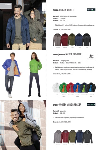 GREY SOLIDGREY SOLIDWHITE GREEN/NEON ORANGERED/WARM GREY BLUE/NEON ORANGENAVY/NEON GREEN BLACK/COBALT BLUEBURGUNDYBURGUNDYOLIVEOLIVENAVYNAVYBLACKBLACK76954 %u2022 UNISEX JACKETMateri%u00e1l: 80 % bavlna, 20 % polyesterGram%u00e1%u017e: 300 g/m2Ve%u013ekos%u0165: XS %u2013 3XL%u2022 Klasick%u00fd strih, 3-vrstvov%u00fd %u00faplet s jemne %u010desanou vn%u00fatornou %u00fapravou.Cena od: 68,87 %u20ac / 1 770,00 K%u010d09926 | 62689 %u2022 JACKET TROOPERMateri%u00e1l: 210T polyesterVe%u013ekos%u0165: MAN (S %u2013 3XL) | WOMAN (XS %u2013 2XL)%u2022 %u013dahk%u00e1 bomber bunda so skrytou kapuc%u0148ou, vn%u00fatorn%u00e9 vrecko, vreck%u00e1 na zips. Vodn%u00fd st%u013apec 400 mm, pod%u0161%u00edvka z diamantovej sie%u0165oviny.Cena od: 48,31 %u20ac / 1 241,60 K%u010d87281 %u2022 UNISEX WINDBREAKERMateri%u00e1l: polyesterVe%u013ekos%u0165: XS %u2013 3XL%u2022 %u013dahk%u00e1 bunda s kapuc%u0148ou, odpudzuje vietor a vodu.Cena od: 63,36 %u20ac / 1 628,40 K%u010d490 TEXTIL | BUNDY