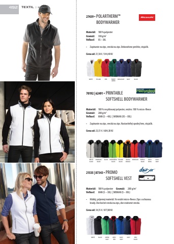 NAVY BLACKWHITE BLACKYELLOW/BLACKNAVY/ROYALNAVY/NAVYPURPLE/BLACKBLACK/ RED/BLACKORANGEWHITE/BLACKVIVID GREEN/BLACKCHARCOAL/ BLACKBLACKWHITE YELLOW RED FOREST GREENROYAL BLUEGREEN/NAVYRED/BLACKBLUE/ NAVYNAVYGREY/REDGENUINErecycby led27439 %u2022 POLARTHERM%u2122 BODYWARMERMateri%u00e1l: 100% polyesterGram%u00e1%u017e: 330 g/m2 Ve%u013ekos%u0165: XS %u2013 3XL%u2022 Zap%u00ednanie na zips, vreck%u00e1 na zips. Dekorat%u00edvne pre%u0161itie, stoja%u010dik.Cena od: 21,18 %u20ac / 544,40 K%u010d70192 | 62491 %u2022 PRINTABLE SOFTSHELL BODYWARMERMateri%u00e1l: 100% recyklovan%u00fd polyester, vn%u00fatro: 100 % micro-fleeceGram%u00e1%u017e: 280 g/m2Ve%u013ekos%u0165: MAN (S %u2013 4XL) | WOMAN (XS %u2013 XXL)%u2022 Zap%u00ednanie na zips, vreck%u00e1 na zips. Nastavite%u013en%u00fd spodn%u00fd lem, stoja%u010dik.Cena od: 23,51 %u20ac / 604,30 K%u010d21535 | 87343 %u2022 PROMO SOFTSHELL VESTMateri%u00e1l: 100% polyester Gram%u00e1%u017e: 280 g/m2Ve%u013ekos%u0165: MAN (S %u2013 3XL) | WOMAN (S %u2013 XXL)%u2022 M%u00e4kk%u00fd, pr%u00edjemn%u00fd materi%u00e1l. Vo vn%u00fatri micro-fleece. Zips s%u00a0ochranou brady. Dve bo%u010dn%u00e9 vreck%u00e1 na zips, dve vn%u00fatorn%u00e9 vreck%u00e1.Cena od: 34,15 %u20ac / 877,80 K%u010d492 TEXTIL | BUNDY