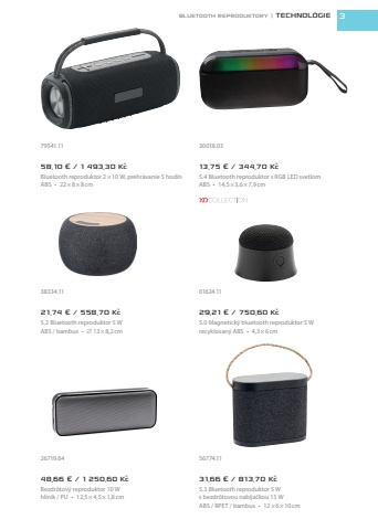 58,10 %u20ac / 1 493,30 K%u010dBluetooth reproduktor 2%u00d710 W, prehr%u00e1vanie 5 hod%u00ednABS %u2022 22%u00d78%u00d78cm13,75 %u20ac / 344,70 K%u010d5.4 Bluetooth reproduktor s%u00a0RGB LED svetlomABS %u2022 14,5%u00d73,6%u00d77,9cm48,66 %u20ac / 1 250,60 K%u010dBezdr%u00f4tov%u00fd reproduktor 10 Whlin%u00edk / PU %u2022 12,5%u00d74,5%u00d71,8cm21,74 %u20ac / 558,70 K%u010d5.2 Bluetooth reproduktor 5 WABS / bambus %u2022 @ 13%u00d78,2cm29,21 %u20ac / 750,60 K%u010d5.0 Magnetick%u00fd bluetooth reproduktor 5 Wrecyklovan%u00fd ABS %u2022 4,3%u00d76cm31,66 %u20ac / 813,70 K%u010d5.3 Bluetooth reproduktor 5 W s%u00a0bezdr%u00f4tovou nab%u00edja%u010dkou 15 WABS / RPET / bambus %u2022 12%u00d76%u00d710cm79541.1126719.6438334.11 01624.1156774.1130018.03BLUETOOTH REPRODUKTORY | TECHNOL%u00d3GIE 3