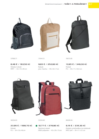6,46 %u20ac / 163,50 K%u010dSkladac%u00ed ruksakRPET %u2022 32%u00d719%u00d740cm9,83 %u20ac / 252,60 K%u010dRuksakjuta / bavlna %u2022 40%u00d732%u00d77cm13,95 %u20ac / 349,30 K%u010dRuksakPU %u2022 30%u00d711%u00d742,5cm23,95 %u20ac / 599,70 K%u010dRuksakPU %u2022 34%u00d716%u00d746cm10,77 %u20ac / 276,80 K%u010d%u0160portov%u00fd ruksak 600D polyester %u2022 43%u00d729%u00d715cm9,15 %u20ac / 235,30 K%u010dRuksak s%u00a0priehradkou na notebookRPET pls%u0165 %u2022 39%u00d711%u00d751cm89650.0637938.77 11544.13 78272.0336556.03 52524.60%u0160PORTOV%u00c9 RUKSAKY | TA%u0160KY A PE%u0147A%u017dENKY 67