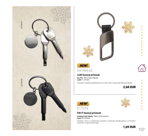 107R17574.01 R17574.02NEW!NEW!R41499.02LUXI kovov%u00fd pr%u00edvesokkov, PU %u2022 %u016075 x V25 x H8 mmLaser 7 x 14 mmPr%u00edvesok z matn%u00e9ho grafitov%u00e9ho kovu a eko ko%u017ee v %u010diernej dar%u010dekovej krabi%u010dke.2,68 EURR17574..FIX-IT kovov%u00fd pr%u00edvesoknerezov%u00e1 oce%u013e, kart%u00f3n %u2022 %u016054 x V15 x H6 mmLaser 25 x 25 mmPr%u00edvesok z kovu s miniat%u00farnym ploch%u00fdm a kr%u00ed%u017eov%u00fdm skrutkova%u010dom a pr%u00edveskom s plochou na grav%u00edrovanie loga.1,69 EUR