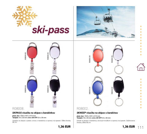 111R08002.08 R08002.04R08002.06 R08002.02R08008.08 R08008.04R08008.06 R08008.02ski-passR08008..SKIPASS visa%u010dka na skipas s karab%u00ednkouplast, kov %u2022 %u016035 x V67 x H15 mmTamp%u00f3n 18 x 20 mm alebo UV DTF 23 x 28 mmVisa%u010dka na skipas z plastu a kovu s karab%u00ednou a sponou na opasok. D%u013a%u017eka %u0161n%u00farky 86 cm.1,36 EURR08002..SKIKEEP visa%u010dka na skipas s karab%u00ednouplast, kov %u2022 %u016035 x V67 x H15 mmTamp%u00f3n 18 x 20 mm alebo UV DTF 23 x 28 mmDr%u017eiak na skipas s karab%u00ednou, kovov%u00fdm kr%u00fa%u017ekom a sponou na opasok. Za%u0165ahovacia %u0161n%u00farka, d%u013a%u017eka 86 cm.1,36 EUR
