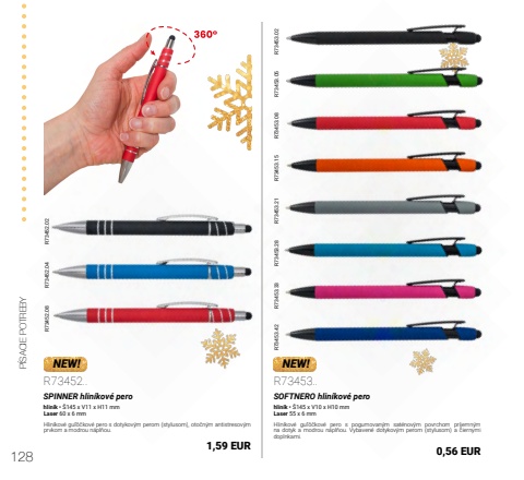 128P%u00cdSACIE POTREBYR73452.02R73453.02 R73453.15R73452.04R73453.05 R73453.21 R73453.33 R73452.08 R73453.08 R73453.28 R73453.42NEW! NEW!R73452..SPINNER hlin%u00edkov%u00e9 perohlin%u00edk %u2022 %u0160145 x V11 x H11 mmLaser 60 x 6 mmHlin%u00edkov%u00e9 gu%u013e%u00f4%u010dkov%u00e9 pero s dotykov%u00fdm perom (stylusom), oto%u010dn%u00fdm antistresov%u00fdm prvkom a modrou n%u00e1pl%u0148ou.1,59 EURR73453..SOFTNERO hlin%u00edkov%u00e9 perohlin%u00edk %u2022 %u0160145 x V10 x H10 mmLaser 55 x 6 mmHlin%u00edkov%u00e9 gu%u013e%u00f4%u010dkov%u00e9 pero s pogumovan%u00fdm sat%u00e9nov%u00fdm povrchom pr%u00edjemn%u00fdm na dotyk a modrou n%u00e1pl%u0148ou. Vybaven%u00e9 dotykov%u00fdm perom (stylusom) a %u010diernymi doplnkami.0,56 EUR
