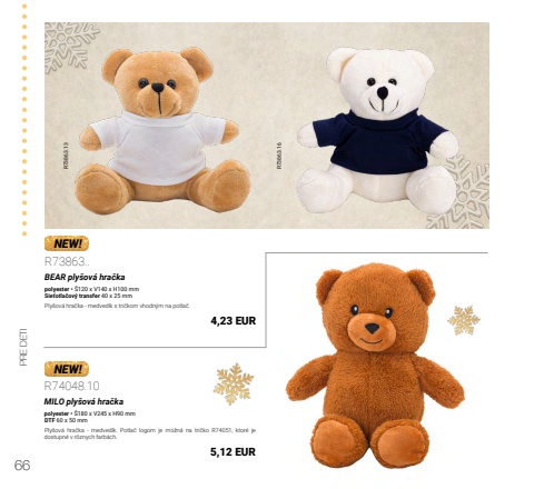 66PRE DETIR73863.13 R73863.16NEW!NEW!R73863..BEAR ply%u0161ov%u00e1 hra%u010dkapolyester %u2022 %u0160120 x V140 x H100 mmSie%u0165otla%u010dov%u00fd transfer 40 x 25 mmPly%u0161ov%u00e1 hra%u010dka - medved%u00edk s tri%u010dkom vhodn%u00fdm na potla%u010d.4,23 EURR74048.10MILO ply%u0161ov%u00e1 hra%u010dkapolyester %u2022 %u0160180 x V245 x H90 mmDTF 60 x 50 mmPly%u0161ov%u00e1 hra%u010dka - medved%u00edk. Potla%u010d logom je mo%u017en%u00e1 na tri%u010dko R74051, ktor%u00e9 je dostupn%u00e9 v r%u00f4znych farb%u00e1ch.5,12 EUR