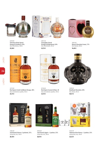 24LIK%u00c9RY LIK%u00c9RY69769.00Christmas Globe Spiced Orange & Cranberry, 20%lik%u00e9r, Ve%u013ek%u00e1 Brit%u00e1nia, 700 ml25,38 %u20ac26753.00Ron Espero Creole Caribbean Orange, 40%lik%u00e9r, Dominik%u00e1nska republika, 700 ml23,73 %u20ac25867.00Jack Daniel%u2019s Honey s 2 poh%u00e1rmi, 35%whisky lik%u00e9r, USA, 700 ml28,18 %u20ac64821.00Snowglobe Spiced Orange & Gingerbread, 20%lik%u00e9r, Ve%u013ek%u00e1 Brit%u00e1nia, 700 ml25,73 %u20ac28834.00Mozart Chocolate Cream, 17%lik%u00e9r, Rak%u00fasko, 500 ml16,45 %u20ac85784.00Ron Espero Coconut & Rum, 40lik%u00e9r, Dominik%u00e1nska republika, 700 ml25,75 %u20ac06703.00Jack Daniel%u2019s Apple + 2 poh%u00e1re, 35%whisky lik%u00e9r, USA, 700 ml28,14 %u20ac25099.00Deadhead Chocolate, 38%lik%u00e9r, Mexiko, 700 ml44,51 %u20ac93325.00Tullamore Dew Honey + 2 poh%u00e1re, 35%whiskey lik%u00e9r, %u00cdrsko, 700 ml22,32 %u20ac