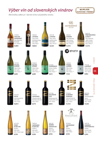 46426.00V%u00cdNO KR%u00c1%u013dOVNEJ AL%u017dBETYTokaj, Makovisko, v%u00fdber z hrozna, biele polosuch%u00e9, 2023, 750 ml,**11,77 %u20ac36287.00CABERNET SAUVIGNON BIOHus%u00e1rka, %u010derven%u00e9 such%u00e9, 2021, 750 ml, *9,79 %u20ac60846.00HANKOVETokaj, Makovisko, v%u00fdber z hrozna, biele polosladk%u00e9, 2023, 750 ml,**11,77 %u20ac78610.00LIPOVINATokaj, Chot%u00e1r, hrozienkov%u00fd v%u00fdber, biele sladk%u00e9, 2024, 500 ml19,96 %u20ac43727.00LIPOVINATokaj, Chot%u00e1r, bobu%u013eov%u00fd v%u00fdber, biele sladk%u00e9, 2023, 750 ml,**13,72 %u20ac18962.00TRAM%u00cdN %u010cERVEN%u00dd BIOVini%u010dky II., biele such%u00e9, 2023, 750 ml, *9,79 %u20ac05349.00CHARDONNAY BIOKatovka, biele such%u00e9, 2022, 750 ml9,79 %u20ac70693.00SAUVIGNON BLANC BIOVini%u010dky II., biele such%u00e9, 2022, 750 ml, *9,79 %u20ac67212.00PINOT BLANC BIOHus%u00e1rka, biele such%u00e9, 2021, 750 ml, vegan9,79 %u20acMinim%u00e1lny odber je 1 kart%u00f3n (6 ks) od jedn%u00e9ho vin%u00e1ra.V%u00fdber v%u00edn od slovensk%u00fdch vin%u00e1rov3571509.00TOKAJSK%u00c9 SAMORODN%u00c9Tokaj, Makovisko, %u017elt%u00e9 sladk%u00e9, 2013, 500 ml, **14,99 %u20acV%u00ddBER SLOVENSK%u00c9 V%u00cdNA64397.00ALIBERNET%u010cajkov, Kruhy, %u010derven%u00e9 such%u00e9, 2022, 750 ml8,99 %u20ac11685.00TRAM%u00cdN %u010cERVEN%u00dd%u010cajkov, Kruhy, biele such%u00e9, 2023, 750 ml, **7,32 %u20ac75972.00RIZLING VLA%u0160SK%u00dd%u00a0%u010cajkov, Kruhy, biele such%u00e9, 2024, 750 ml, **6,20 %u20ac64397.00ALIBERNET%u010cajkov, Kruhy, %u010derven%u00e9 such%u00e9, 2022, 750 ml8,99 %u20ac11685.00TRAM%u00cdN %u010cERVEN%u00dd%u010cajkov, Kruhy, biele such%u00e9, 2023, 750 ml, **7,32 %u20ac75972.00RIZLING VLA%u0160SK%u00dd%u00a0%u010cajkov, Kruhy, biele such%u00e9, 2024, 750 ml, **6,20 %u20ac04208.00RIZLING R%u00ddNSKY%u010cajkov, Kruhy, biele such%u00e9, 2024, 750 ml, ** 6,20 %u20ac53728.00CHARDONNAY Dr%u017eenice, Bari%u010dky biele such%u00e9, 2024, 750 ml, ** 7,61 %u20ac86259.00DUNAJJu%u017enoslovensk%u00e1 VO, Jasov%u00e1, %u010derven%u00e9 such%u00e9, 2022, 750 ml11,34 %u20ac30173.00RULANDSK%u00c9 %u0160ED%u00c9Malokarpatsk%u00e1 VO, Pezinok, biele such%u00e9, 2024, 750 ml9,94 %u20ac97562.00ALIBERNET BARRIQUEJu%u017enoslovensk%u00e1 VO, R%u00faba%u0148, %u010derven%u00e9 such%u00e9, 2021, 750 ml11,11 %u20ac94753.00SAUVIGNONJu%u017enoslovensk%u00e1 VO, Nov%u00e1 Vieska, biele such%u00e9, 2024, 750 ml8,77 %u20ac58376.00HOSSAJu%u017enoslovensk%u00e1 VO, biele such%u00e9, 2024, 750 ml10,91 %u20ac