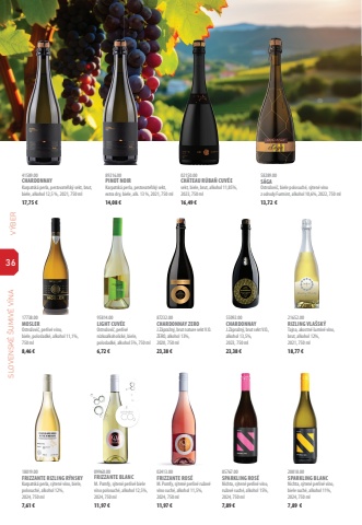 55092.00CHARDONNAY J.Z%u00e1pra%u017en%u00fd, brut sekt V.O., alkohol 13,5%, 2023, 750 ml23,38 %u20ac95814.00LIGHT CUV%u00c9EOstro%u017eovi%u010d, perliv%u00e9 n%u00edzkoalkoholick%u00e9, biele, polosladk%u00e9, alkohol 5%, 750 ml6,72 %u20ac21652.00RIZLING VLA%u0160SK%u00ddTajna, akostn%u00e9 %u0161umiv%u00e9 v%u00edno, brut, alkohol 12%, 2021, 750 ml18,77 %u20ac17738.00MOSLEROstro%u017eovi%u010d, perliv%u00e9 v%u00edno, biele, polosladk%u00e9, alkohol 11,1%, 750 ml8,46 %u20ac36V%u00ddBER SLOVENSK%u00c9 %u0160UMIV%u00c9 V%u00cdNA20818.00SPARKLING BLANCNichta, s%u00fdten%u00e9 perliv%u00e9 v%u00edno, biele such%u00e9, alkohol 11%, 2024, 750 ml7,89 %u20ac85767.00SPARKLING ROS%u00c9Nichta, s%u00fdten%u00e9 perliv%u00e9 v%u00edno, ru%u017eov%u00e9 such%u00e9, alkohol 15%, 2024, 750 ml7,89 %u20ac18019.00FRIZZANTE RIZLING R%u00ddNSKYKarpatsk%u00e1 perla, s%u00fdten%u00e9 v%u00edno, biele, polosuch%u00e9, alkohol 12%, 2024, 750 ml7,61 %u20ac09960.00FRIZZANTE BLANCM. Pomfy, s%u00fdten%u00e9 perliv%u00e9 biele v%u00edno polosuch%u00e9, alkohol 12,5%, 2024, 750 ml11,97 %u20ac02413.00FRIZZANTE ROS%u00c9M. Pomfy, s%u00fdten%u00e9 perliv%u00e9 ru%u017eov%u00e9 v%u00edno such%u00e9, alkohol 11,5%, 2024, 750 ml11,97 %u20ac02150.00CH%u00c2TEAU R%u00daBA%u0147 CUV%u00c9Esekt,%u00a0biele, brut, alkohol 11,85%, 2023, 750 ml16,49 %u20ac41589.00CHARDONNAYKarpatsk%u00e1 perla, pestovate%u013esk%u00fd sekt, brut, biele, alkohol 12,5 %, 2021, 750 ml17,75 %u20ac89216.00PINOT NOIRKarpatsk%u00e1 perla, pestovate%u013esk%u00fd sekt, extra dry, biele, alk. 13 %, 2021, 750 ml14,08 %u20ac58289.00S%u00c1GAOstro%u017eovi%u010d, biele polosuch%u00e9, s%u00fdten%u00e9 v%u00edno z odrody Furmint, alkohol 10,6%, 2022, 750 ml13,72 %u20ac87232.00CHARDONNAY ZEROJ.Z%u00e1pra%u017en%u00fd, brut nature sekt V.O. ZERO, alkohol 13%, 2020, 750 ml23,38 %u20ac