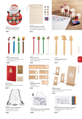 77DOPLNKY VIANO%u010cN%u00c951812.01Viano%u010dn%u00e9 puzdro na pastelky na vyfarbenieZ netkanej RPET tkaniny so zap%u00ednan%u00edm na zips a 5 voskovkami.0,67 %u20ac85350.35Viano%u010dn%u00e9 dreven%u00e9 pi%u0161kvorkyFSC%u00ae-certiffled. 17,5x24,3x1,5 cm4,06 %u20ac37416.01Viano%u010dn%u00e1 z%u00e1stera pre deti na vyfarbenie Z netkanej RPET tkaniny. 5 voskoviek.0,88 %u20ac49891.Viano%u010dn%u00e9 gu%u013e%u00f4%u010dkov%u00e9 peroDreven%u00e9 pero s viano%u010dnou fflg%u00farkou navrchu. S modrou n%u00e1pl%u0148ou. 15 cm0,80 %u20ac86410.47%u0160portov%u00e9 vrecko na vyfarbenie Z netkanej text%u00edlie, 3 voskovky.Mix r%u00f4znych mot%u00edvov. 29 %u00d7 25 cm0,83 %u20ac91391.Viano%u010dn%u00e1 ceruzkaDreven%u00e1 ceruzka s gumou v tvare viano%u010dnej fflg%u00farky, orezan%u00e1. Kvalita HB. 19 cm0,25%u20ac35 81 76 31 35B 35D 86A 01CVIANO%u010cN%u00c957745.Stojan na mobilZ bambusovej preglejky s vyrez%u00e1van%u00fdm viano%u010dn%u00fdm mot%u00edvom. 7 %u00d7 14,5 %u00d7 5,7 cm1,82 %u20ac17A17B17C17C04835.00Bambusov%u00e9 prav%u00edtko12 cm prav%u00edtko z bambusovej preglejky.0,64 %u20ac8483 0099 307859537.07Viano%u010dn%u00e9 pe%u010diatky so vrec%u00fa%u0161ku Sada 8 dreven%u00fdch viano%u010dn%u00fdch pe%u010diatok a %u0161tvorfarebn%u00e9ho pe%u010diatkov%u00e9ho atramentu.2,62 %u20ac37900.17Viano%u010dn%u00e9 gu%u013e%u00f4%u010dkov%u00e9 pero1,2 x 15 cm0,91 %u20ac21731.35Viano%u010dn%u00fd blokBlok A6 z recyklovan%u00e9ho kraftov%u00e9ho papiera 1,2 x 15 cm0,67 %u20acA17B C