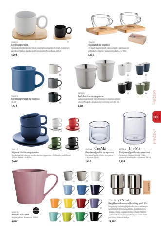 83HRN%u010cEKY HRN%u010cEKY27261.26Recyklovan%u00e9 nerezov%u00e9 hrn%u010deky, sada 2 ks Dvojstenn%u00fd hrn%u010dek sp%u00e1ja jednoduchos%u0165 s modern%u00fdm n%u00e1dychom a steles%u0148uje podstatu %u0161kandin%u00e1vskeho dizajnu. V%u010faka svojej praktickej ve%u013ekosti (160 ml) a stohovate%u013en%u00e9mu tvaru je ide%u00e1lny na ka%u017edodenn%u00e9 pou%u017eitie a %u013eahko sa skladuje.15,51 %u20ac55697.01Keramick%u00fd hrn%u010dekVysoko kvalitn%u00fd keramick%u00fd hrn%u010dek s matn%u00fdm vonkaj%u0161%u00edm a leskl%u00fdm vn%u00fatorn%u00fdm povrchom. Vr%u00e1tane bambusov%u00e9ho serv%u00edrovacieho podnosu. 220 ml.4,29 %u20ac74650.20Keramick%u00fd hrn%u010dek na espresso40 ml1,43 %u20ac74738.91Sada hrn%u010dekov na espressoSada 2 dvojstenn%u00fdch termohrn%u010dekov na espresso v tvare k%u00e1vov%u00fdch kaps%u00fal z recyklovanej nerezovej ocele, 80 ml. 8,69%u20ac69728.66Dvojstenn%u00fd poh%u00e1r na cappuccinodvojstenn%u00fd sklenen%u00fd hrn%u010dek CrisMa z borosilik%u00e1tov%u00e9ho skla s objemom 200 ml.2,89 %u20ac48651.66Dvojstenn%u00fd poh%u00e1r na espresso Dvojstenn%u00fd poh%u00e1r CrisMa na espresso s objemom 50 ml. 1,62 %u20ac20563.82Sada %u0161%u00e1lok na espressoSet dvoch dvojstenn%u00fdch espresso %u0161%u00e1lok s bambusov%u00fdm podt%u00e1ckom. Balen%u00e9 v kart%u00f3novom obale. 2 %u00d7 90ml8,17 %u20ac36811.57S%u00faprava %u0161%u00e1lok na cappuccinoVysoko kvalitn%u00e1 keramick%u00e1 sada %u0161%u00e1lok na cappuccino s 2 %u0161%u00e1lkami a pod%u0161%u00e1lkami. 200 ml. Balen%u00e9 v krabi%u010dke.7,64 %u20ac01 3576 1163527.66Hrn%u010dek SAGAFORMHrn%u010dek na k%u00e1vu. Kamenina. 200 ml4,09 %u20ac16 27 0131 57 8171 39 35 4214 76 73 111111110186572301