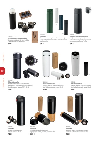 TERMOSKY TERMOSKY91565.01F%u013ea%u0161a s teplomeromN%u00e1pojov%u00e1 f%u013ea%u0161a s LED displejom na vrhcn%u00e1ku, ktor%u00fd dotknut%u00edm zobrazuje teplotu. 500 ml7,33 %u20ac61405.03V%u00e1kuov%u00e1 termoskaTermoska z nehrdzavej%u00facej ocele s teplotn%u00fdm ukazovate%u013eom v uz%u00e1vere a bezpe%u010dnostn%u00fdm uz%u00e1verom. Maxim%u00e1lny teplotn%u00fd ukazovate%u013e 99 %u00b0C. 420 ml7,56 %u20ac42595.97Termoska Dvojstenn%u00e1 termoska na pitie z recyklovanej nerezovej ocele s bezpe%u010dnostn%u00fdm z%u00e1mkom na vie%u010dku a mo%u017enos%u0165ou otv%u00e1rania stla%u010den%u00edm. 300 ml6,45 %u20ac8875987.03Set termosky 400 ml a 3 hrn%u010dekov Set termosky s objemom 400 ml a 3 hrn%u010dekov z nerezovej ocele v dar%u010dekovej krabici.8,99 %u20ac02265.06F%u013ea%u0161a s teplomerom N%u00e1pojov%u00e1 f%u013ea%u0161a s LED displejom na vrhcn%u00e1ku, ktor%u00fd dotknut%u00edm zobrazuje teplotu. 450 ml6,96 %u20ac74044.03Termoska Nerezov%u00e1 dvojstenn%u00e1 v%u00e1kuovo izolovan%u00e1 termoska. 500 ml7,24 %u20ac48843.11Termoska s dr%u017eiakom na telef%u00f3nS dvojitou stenou z recyklovanej nerezovej ocele so silik%u00f3nov%u00fdm proti%u0161mykov%u00fdm kr%u00fa%u017ekom sl%u00fa%u017eiacim ako dr%u017eiak telef%u00f3nu. 420 ml8,42 %u20ac39559.03TermoskaTermoska s bambusov%u00fdm podstavcom, nepriepustn%u00fdm vie%u010dkom, uchom na pren%u00e1%u0161anie. 500 ml12,40 %u20ac45398.03TermoskaDvojstenn%u00e1 v%u00e1kuov%u00e1 termoska na pitie z nerezu s korkov%u00fdm spodkom, sitkovou vlo%u017ekou. 450 ml7,80 %u20ac01161111