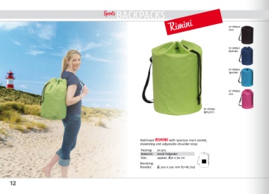 Matchsack RIMINI with spacious main pocket, hole, mesh pockets on the side, strong carrying reinforced carrying handle, padded shoulder straps