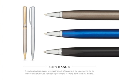 CITY RANGE A simple yet delicate design encircles the body of the pens all the way down to the tip. Perfect for everyday use, from signing documents to jotting down notes in a meeting.