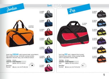 Sports bag FITNESS: spacious main compartment with Sports bag JORDAN: with zippered main compartment, Sport bag PEP with a zippered front pocket,