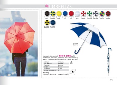 coated handle with loop, polyester pongee canopy, coated handle and carrying loop in matching colour, Automatic stick umbrella DISCO & DANCE, with