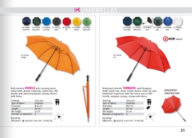 Golf umbrella RAINDROPS: metal shaft and Golf umbrella MOBILE with carrying pouch, Windproof umbrella TORNADO, with fibreglass