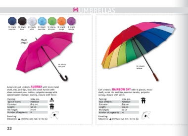 shaft, ribs, and tips, black EVA crook handle with Golf umbrella RAINBOW SKY with 16 panels, metal Automatic golf umbrella RAINBOW LIGHT with Automatic windproof umbrella PASSAT with metal