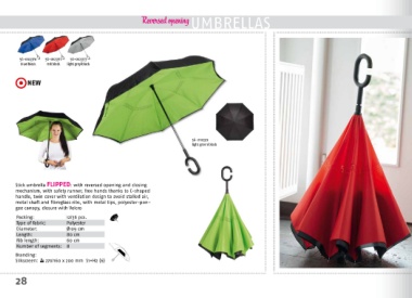 Stick umbrella FLIPPED: with reversed opening and closing Automatic stick umbrella OPPOSITE: with reversed opening