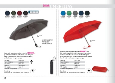 Aluminium mini pocket umbrella POCKET with Aluminium pocket umbrella SHORTY with colour-mat- Automatic open/close pocket umbrella BORA,