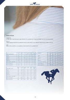 Chest ½ 56 59 62 66 70 74 Chest ½ 48 50 52 55 58 61