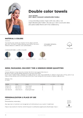 Our double color towels are made of 100 % cotton and 500 Our unicolor towel bags are made of 100 % cotton and 360