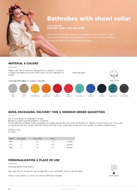 on top there will be a sticker with the name and size of your bathrobe, along with the number of pieces inside the box. Each bathrobe is folded inside a polybag and safely packed in a box, sized 40x60x50 cm. Weight of each box is cca. 13 kg, and