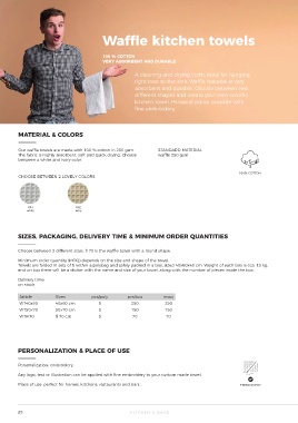 Our waffle towels are made with 100 % cotton in 250 gsm. STANDARD MATERIAL Our canvas kitchen towels are made of 100 % cotton - canvas STANDARD MATERIAL