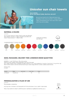 Place of use: at the beach, in bars, at sports or music events, at Place of use: bathroom, beach, swimming pool or professional applications (wellness, spa...) EMBROIDERY