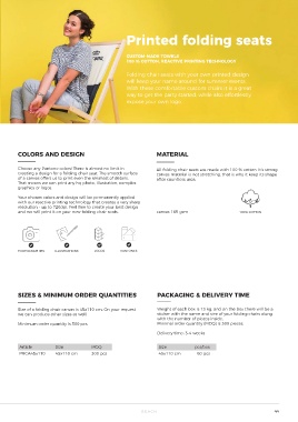 Minimal order quantity (MOQ) is 100 pieces. Each towel is folded inside a polybag and safely packed in we can produce other sizes as well. sticker with the name and size of your folding chairs along