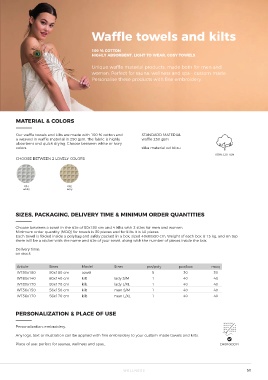 Our sauna towels and kilts are made with 100 % cotton and Our waffle towels and kilts are made with 100 % cotton and STANDARD MATERIAL