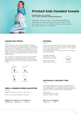 designs. On the other hand, there is almost no limit in between terry or velour material, both in 360 gsm. The fabric is hooded towel made with velour material. Its smooth surface between our standard or superior material. Standard material