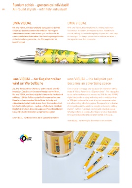 Mit uma VISUAL wird das komplette Gehäuse eines Schreib- With uma VISUAL the entire barrel of a writing instrument