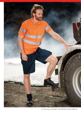 Foto: Pracovné odevy značky RIMECK : šortky WOODY W05, polokošeľa HV RUNWAY 2V9