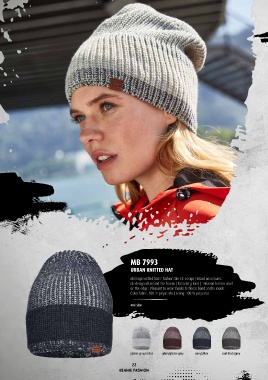 Melange knitted hat in fashionable rib-design | Broad unicoloured Knitted hat with brim and pompon | Twin layer knitting |