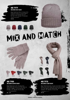 Elegant knitted gloves made of melange yarns | Elegant knitted scarf made of melange yarns | Border in twin layer