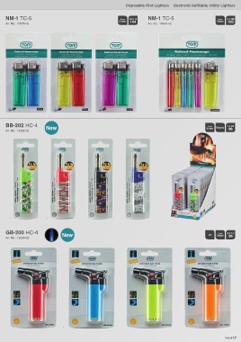 Disposable Flint Lighters Electronic Refillable Utility Lighters NM-1 TC-5 NM-1 TC-5 Art. No.: 10075-02 Art. No.: 10434-02 BB-202 HC-4 Art. No.: 12282-02 GB-200 HC-4 Art. No.: 12299-02 Retail 17