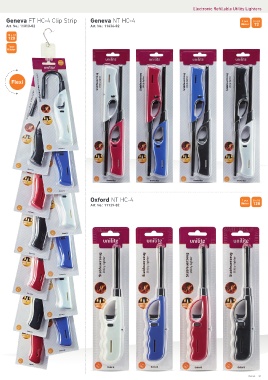 Electronic Refillable Utility Lighters Geneva FT HC-4 Clip Strip Geneva NT HC-4 2 pcs Art. No.: 11010-02 Art. No.: 11636-02 Blister 1 pcs Blister Flexi Oxford NT HC-4 1 pcs Art. No.: 11139-02 Blister Retail 21