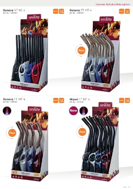 Electronic Refillable Utility Lighters Geneva NT HC-4 Display Geneva FT MT-4 Display Art. No.: 11013-01 Art. No.: 11007-01 Flexi Geneva FT MT-4 Display Miami FT MT-4 Display Art. No.: 11005-01 Art. No.: 11119-01 New Flexi Flexi Retail 25
